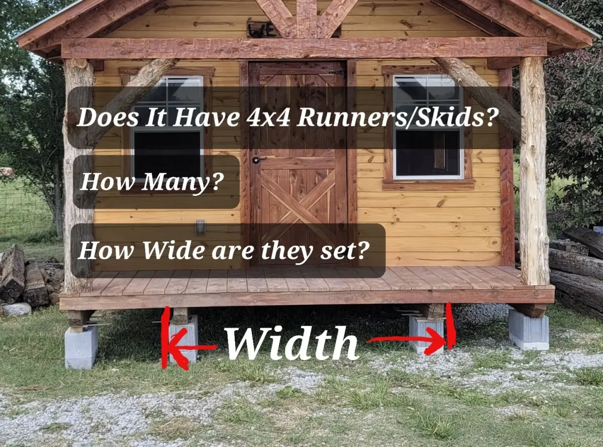 Building Size- Refer To Pictures (provide height at tallest point to the bottom of the 4x4 runners, width at widest point, and length at longest point)
